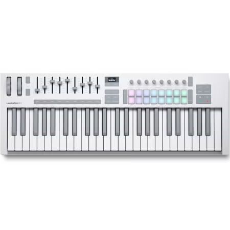 De Novation Launchkey 49 MK4 White MIDI‑controller biedt 49 semi‑gewogen toetsen, 16 RGB‑pads en knoppen voor directe creatieve expressie. Met ingebouwde schaal‑ en akkoordmodi en directe DAW‑integratie blijf je moeiteloos creatief en in toon.