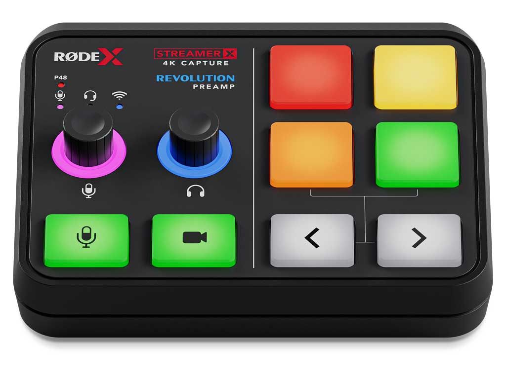 De Rode Streamer X is een professionele videocapturekaart, audio-interface en control surface geïntegreerd in één compact apparaat dat het creëren van ongelooflijke content ongelooflijk eenvoudig maakt. Hij beschikt over audio-ingangen van studiokwaliteit voor XLR-microfoons en -instrumenten, headsets en draadloze RØDE-microfoons, met een Revolution Preamp™ met ultralage ruis en hoge versterking en krachtige APHEX® audioverwerking voor een ongerepte geluidskwaliteit.