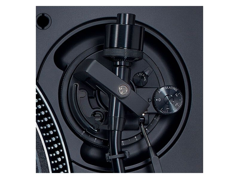 The SL-1200MK7 comes with a static balance S-shaped tonearm to carry on the Technics tradition. The tonearm moves in a unique arc as it tracks the record disc, and reproduces music with high fidelity. The bearing section features a high-precision bearing structure. The tonearm provides high tracking performance without stylus skipping even under hard usage such as scratching.