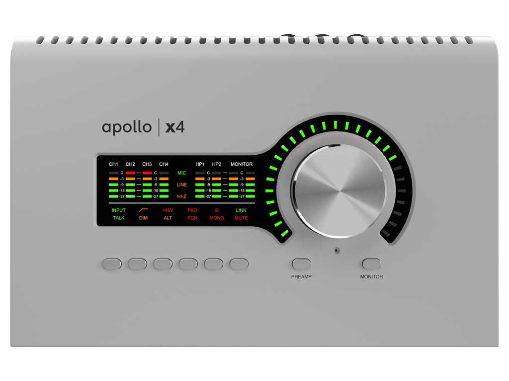 De Apollo x4 Gen 2 Studio+ is een tweede generatie audio interface met verbluffende geluidskwaliteit, ingebouwde QUAD core DSP én een waanzinnig pakket van 50+ plug-ins van UAD.