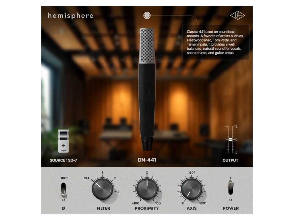 - Hemisphere-microfoonmodellering geeft je het geluid van iconische dynamische en lintmicrofoons van Sennheiser en Beyerdynamic